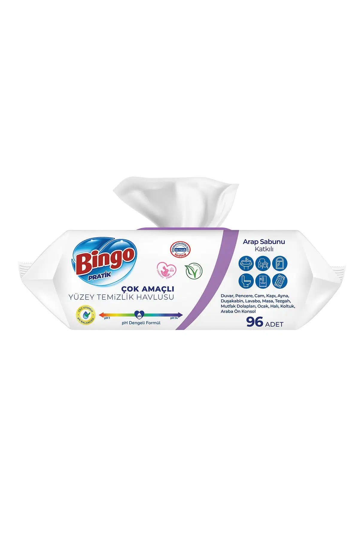| Etiketler | Bingo Pratik Yüzey Temizlik Havlusu Arap Sabunu Katkılı Lavanta 96x3 (288 YAPRAK) |