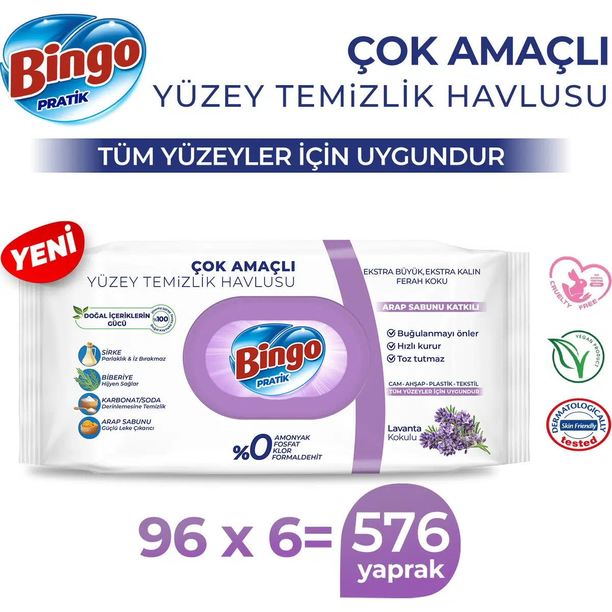 | Etiketler | Bingo Pratik Yüzey Temizlik Havlusu Lavanta 96X6 (576 Yaprak) |