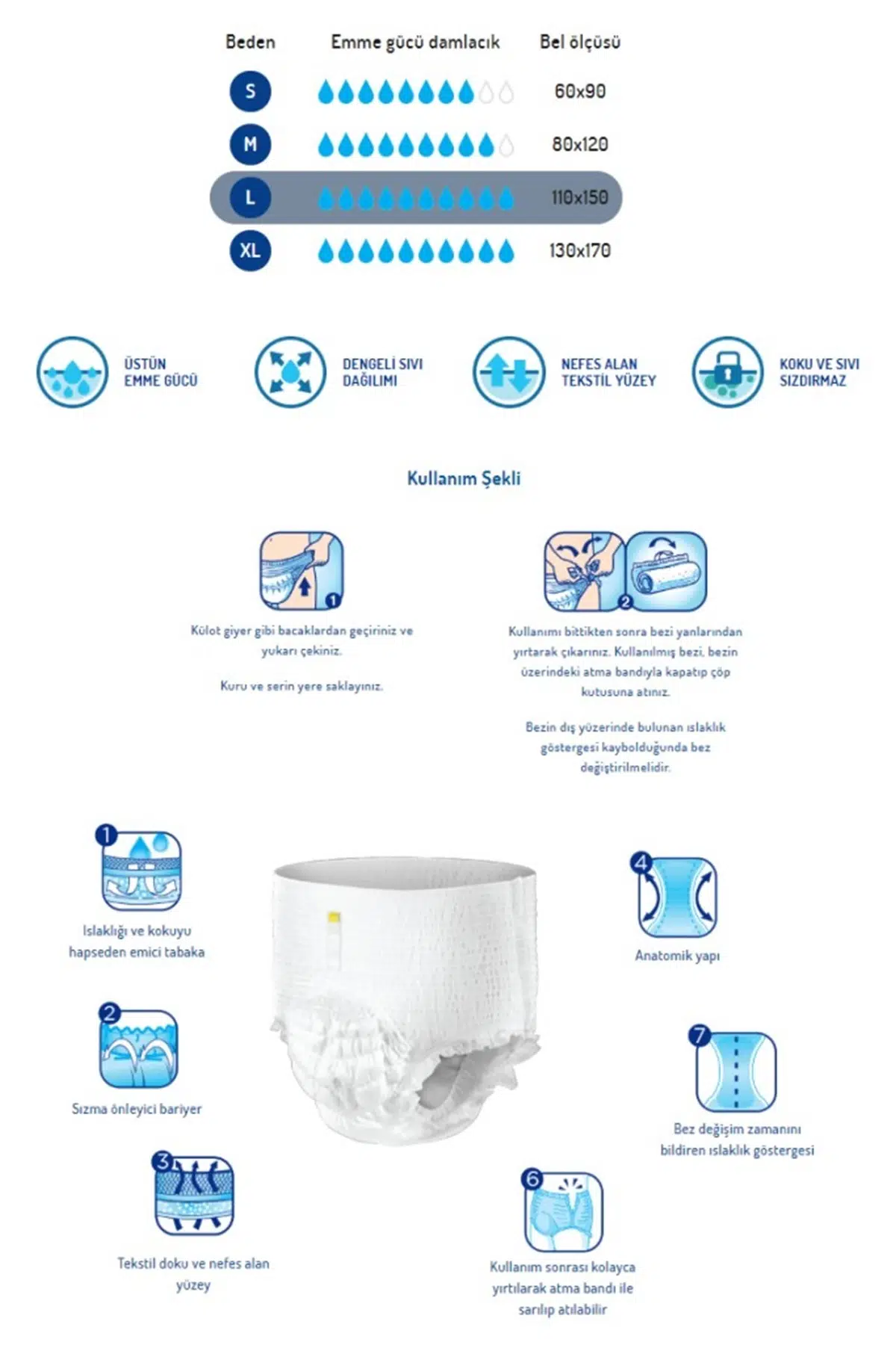 | Etiketler | Emici Külot Hasta Bezi Büyük-Large 48 Adet (6Pk*8) |