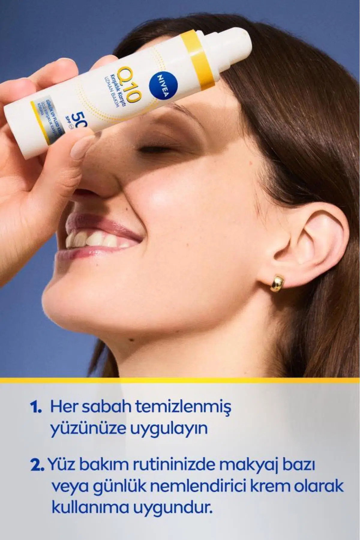 •NIVEA Q10 SPF50 Gündüz Yüz Bakım Kremi, UV ışınlarına karşı koruma sağlar.
