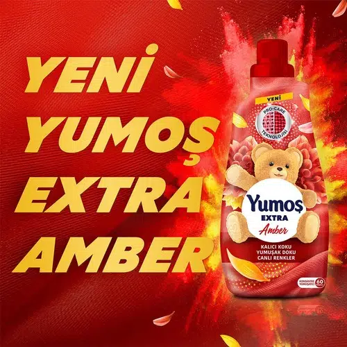 Yumoş Extra Pro-Care teknolojisi ile giysilerinizin ilk günkü canlılığını korumasına yardımcı olur; kalıcı Amber kokusunun etkisi her kullanımda ferahlık verir! En sevdiğimiz giysilerimiz, yıkama esnasında yıpranarak ilk günkü büyüsünü kaybedebilir. Yumoş Extra ise kumaşların dokularını yumuşatır, sürtünme kaynaklı aşınma ve yıpranmaları engellerken giysilerinize uzun süre kalıcı koku sağlar. Giysilerinizin dokusunu yıpranmaya karşı koruyan yumuşatıcı etkisiyle kırışıklıkları azaltarak, ütülemeyi de kolaylaştırır. Giysilerinizin renklerinin ilk günkü gibi canlı kalmasına yardımcı olan Yumoş Extra, her kullanımda giysilerinizin kumaşlarını nazikçe korumak için tasarlanmıştır. Pro-Care Teknolojisine sahip Yumoş Extra’yla giysilerin seninle kalsın!