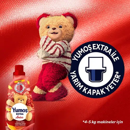 Giysilerinizi ilk günkü canlılığında tutmak ve uzun süreli ferahlık sağlamak için Yumoş’a güvenebilirsiniz. Severek giydiğiniz giysilerinizin ilk günkü gibi kalmasını sağlamak için geliştirilen Yumoş Extra’nın Pro-Care teknolojisi yıkama esnasında yıpranan giysilerinize ihtiyacı olan doku ve renk bakımını sağlar. Giysilerin kumaşlarını yumuşatırken, aynı zamanda uzun süreli doku koruma da sağlar. Yepyeni Amber kokusuyla giysilerinizi ferahlatan; dermatolojik olarak test edilmiş formülüyle hem cildinizi düşünen hem de giysilerinizi koruyan Yumoş Extra yanınızda! Üstelik mis kokulu çiçekleri evinize taşıyan Yumoş Extra Amber Çamaşır Yumuşatıcı’nın 1,5 litresi, konsantre formülü sayesinde standart yumuşatıcıların 6 litresine eşit sayıda yıkama yapıyor.